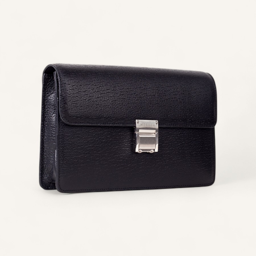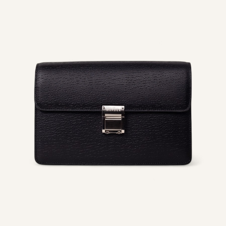 - Thiết kế dạng bì thư, khóa gài họa tiết logo thương hiệu khắc laser nổi bật, đường chỉ bo viền tinh tế và sắc nét