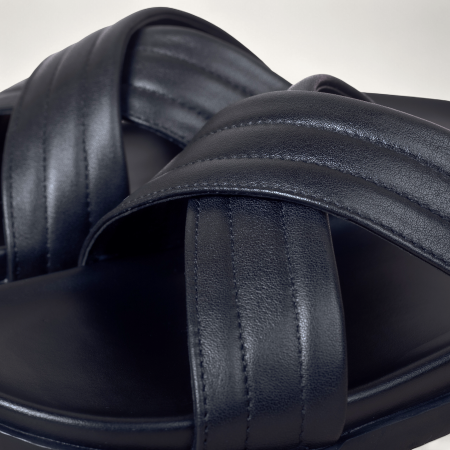 Thiết kế quai chéo bản lớn tạo thành hình chữ X, vừa ôm chân vừa mang lại cảm giác chắc chắn.